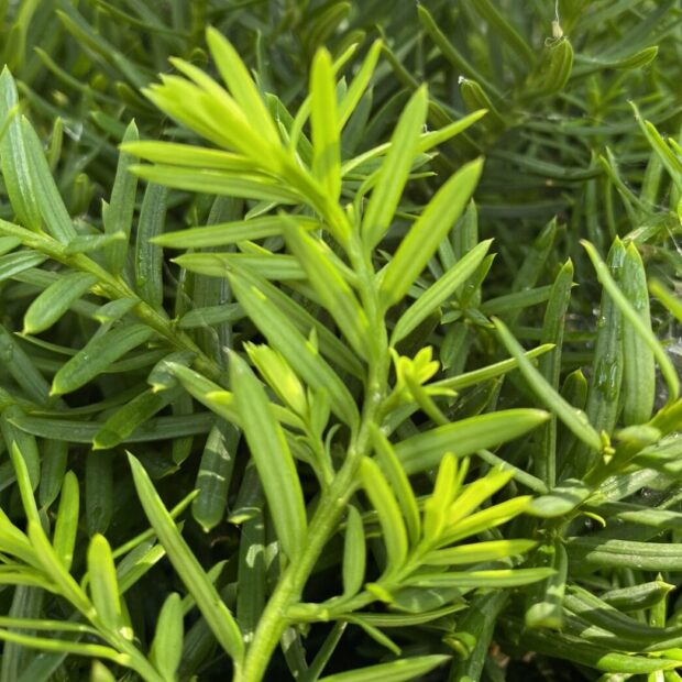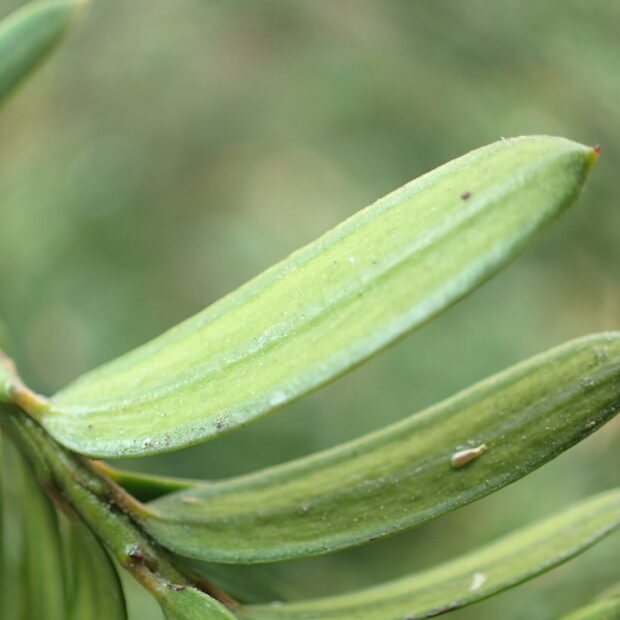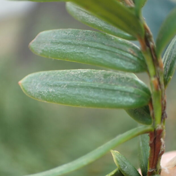 • 太めの針葉。 表面は濃い緑色で艶がある