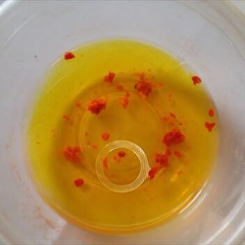 クチナシの種を水につけると色が出てきます。 色水を作って遊んでみましょう。 種を取った色水はゼリーにして食べることもできます。 クチナシの色水自体は味がありません。 色を出した後の種はまくこともできます。