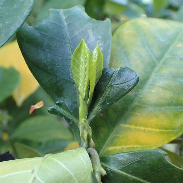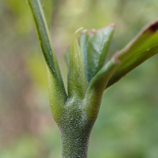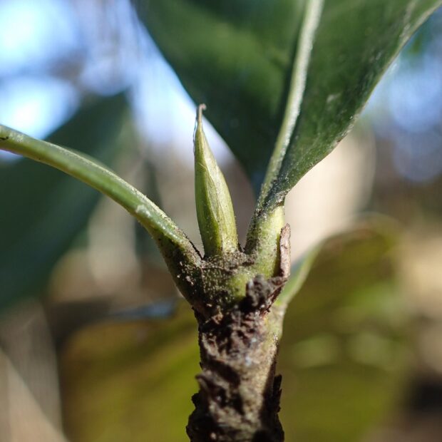 常緑樹なのでいつも葉っぱがあり、 特に冬越しする芽ではありませんが、 葉を出す前の芽を紹介します。