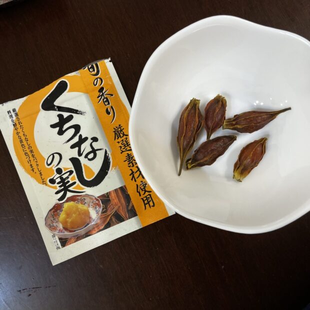 熟すとオレンジ色になり、 実は栗きんとんなど、 食べ物の染料にされます。 また薬にもなります。
