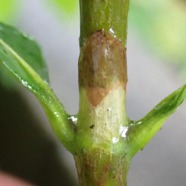 若い枝は托葉が残り、 筒状になっていることがあります。