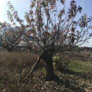 灰黒色です。 老木になると大きな割れ目が入ります。 その年の枝は淡い緑色です。
