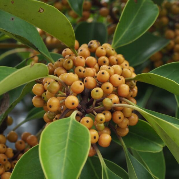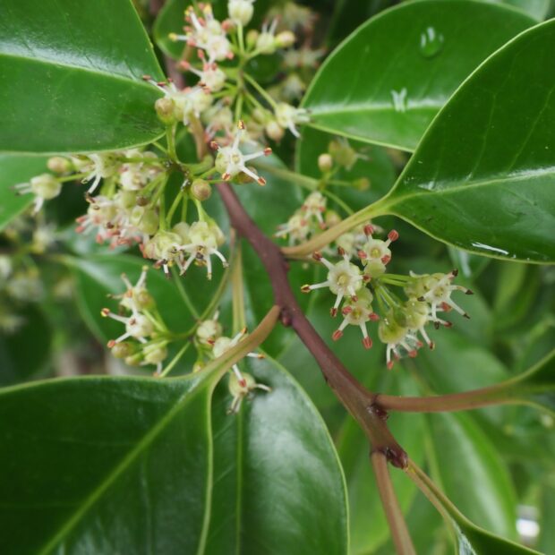 モチノキに似ていて、 新しい枝が黒鉄色(赤っぽい茶色)だから、 クロガネモチという名前になったといわれています。