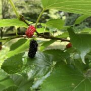 同じ木でも実が熟す時期がバラバラです。 そのおかげで色んな動物や鳥が訪れ、 糞と一緒に色々な場所にクワの種を運ぶと考えられています。