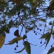 ケヤキのタネは遠くまで飛ぶために葉っぱごと落ちていきます。
