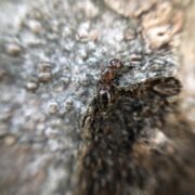 はがれやすい樹皮の裏は、 小さな虫やクモの越冬場所になっています。