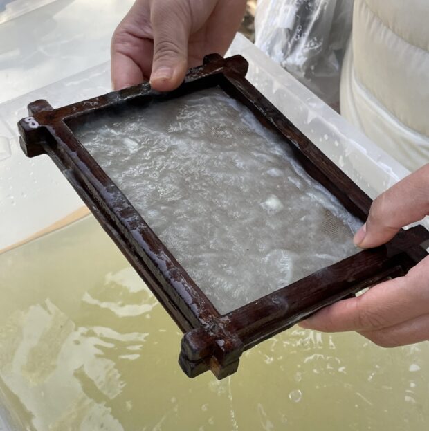 長い繊維がからみ合う性質が強く、 コウゾの樹皮は古くから和紙の原料として使われてきました。 和紙は、 以前は日用品や家具(障子など)まで、 様々なものに使われました。