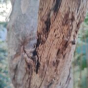 不規則に皮がめくれます。 年を経ると幹がねじれていきます。