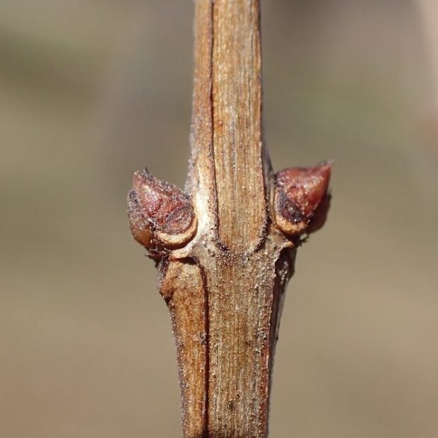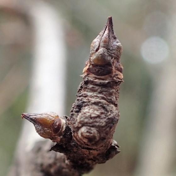 冬芽はとても小さくて見逃してしまうほど。 この冬芽から葉が出たり、 花が咲いたりすると思うと不思議なぐらいです。