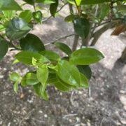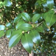 3~7cm程の葉で皮質でテカテカの光沢があります。 周りはギザギザがあります。