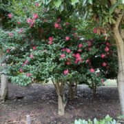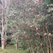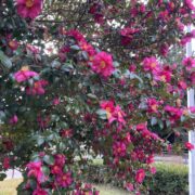 秋の終わりから冬にかけて大きな花が木いっぱいに咲きます。 花は花びらと雄しべが別々に散るのが特徴です。 品種改良され色とりどりの花が楽しめます。