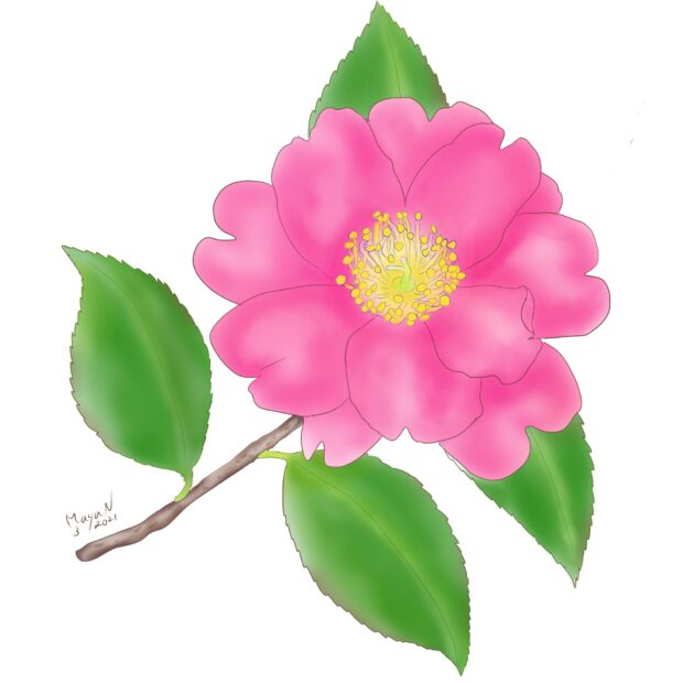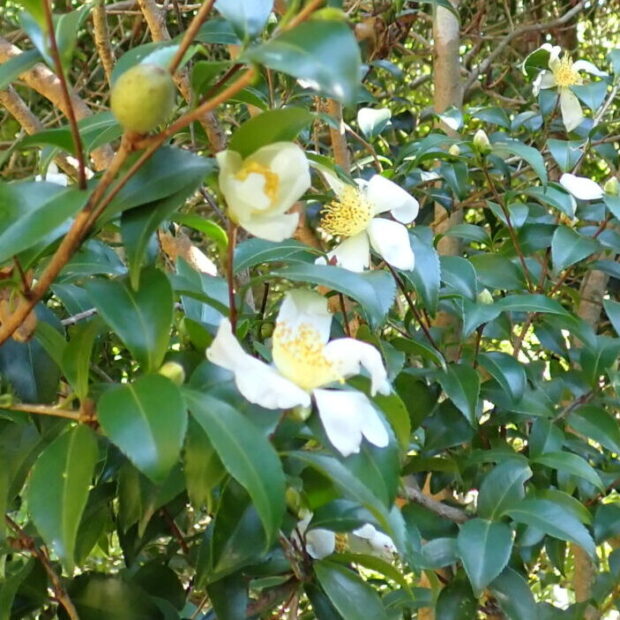 ※園芸種にはツバキとサザンカを掛け合わせたものが多くあり、 両者の中間的な性質を持っています。