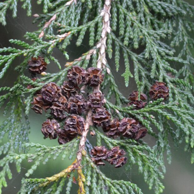 小さな小さな松ぼっくりのような球果がなります。 中には小さな細かい種が挟まっています。