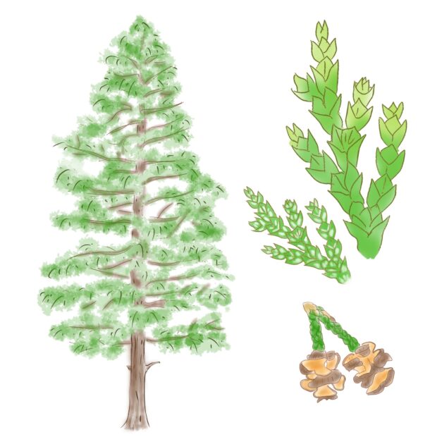 ヒノキに似ていますが、 葉がよりまばらで透けて見えるので軽やかな感じがします。