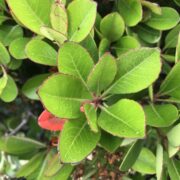 葉の縁に浅いギザギザ(鋸歯・のこぎりば)がまばらにあるものをタチシャリンバイ、 葉の縁にギザギザがほとんどないものをマルバシャリンバイと区別することもありますが、 中間型もあります。