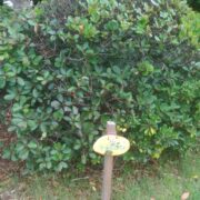 花が「ウメ」に似ており、 葉が車輪のスポークのように輪状につくことから「シャリンバイ」と名付けられました。