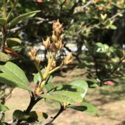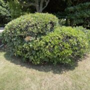街路樹として植えられたものは低木として低く丸く刈りこまれていることが多いです。 自然だと高さ1~4m程になりなります。