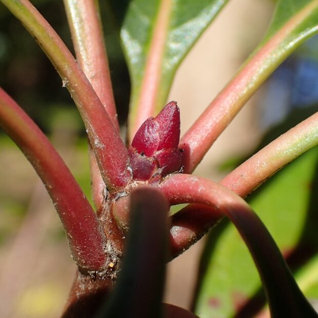 真っ赤な芽は、 大きくて目立ちます。 ここから花と葉が出てきます。