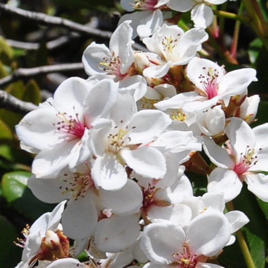 初夏に1~1.5㎝程の梅に似た白い花が枝先に集まって咲きます。 花は時間がたつと中心が赤くなります。