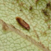 葉や芽にサツマキジラミというセミを小さくしたような昆虫が見られます。 葉脈でじっとしている小さな虫を探してみましょう。