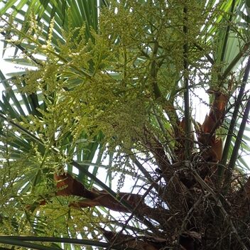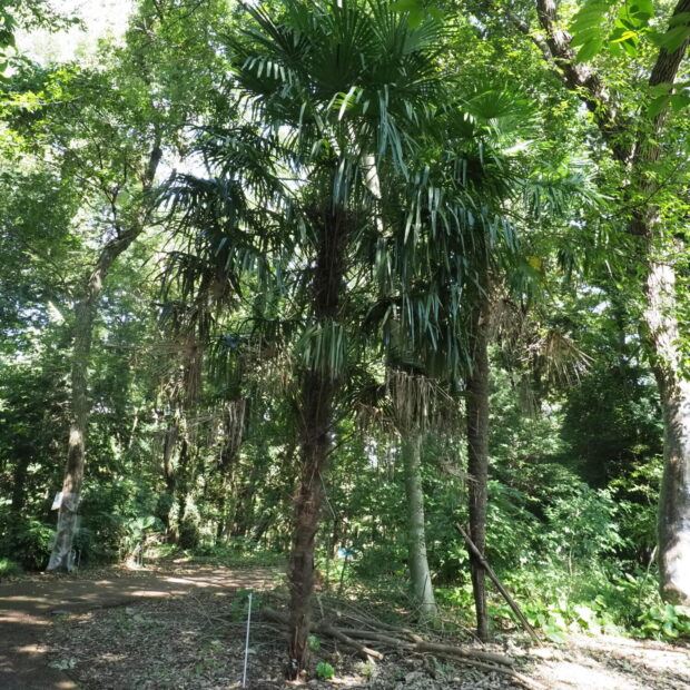 南国の雰囲気のとおり寒いのは苦手ですが、 ヤシの仲間にしては寒さに強いほうです。 日蔭にも強く、 緑地では木の下にたくさん生えています。 昔はいろいろ人が利用していましたが、 最近は鳥がお得意様で、 巣作りに役立ってます。 鳥が実を食べて糞と一緒に種をまいていますが、 温暖化もあって異常な増え方をしています。 都内の公園がいつの間にか熱帯雨林の森のようになっています。