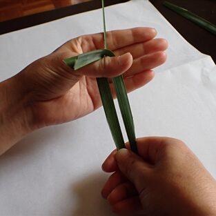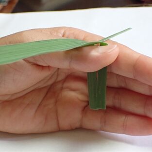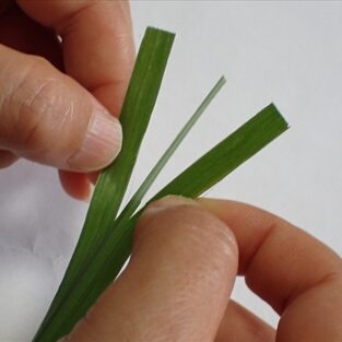 • 割いた葉を下へ葉脈を人差し指の上へセットする