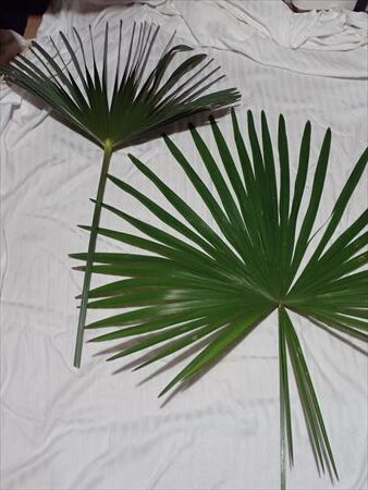 • 葉脈が太くて丈夫な葉っぱを選んで、 20㎝ぐらいの長さ切る(シュロは短めでないと飛ばない)