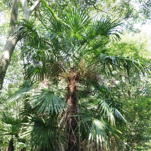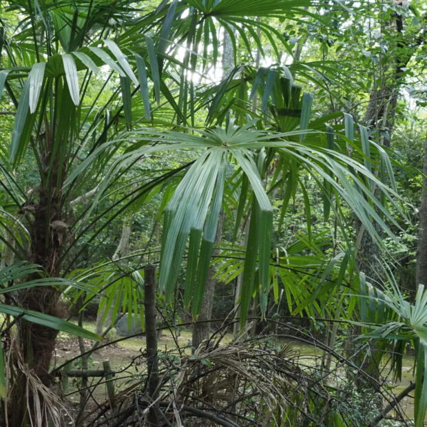 昔は「捨てるところが無い」と言われるほど繊維や葉を利用されていました。 鳥にとっても巣作りの材料にもなる貴重な木です。 鳥はみずからシュロの実を食べ、 糞をし、 あちこちに種をまく手伝いをしています。