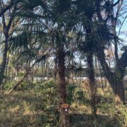 シュロの実を食べにヒヨドリなどがやって来ます。 タネは鳥によって運ばれて、 あちこちでシュロの芽生えが見られます。