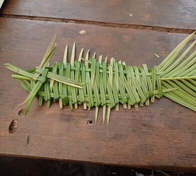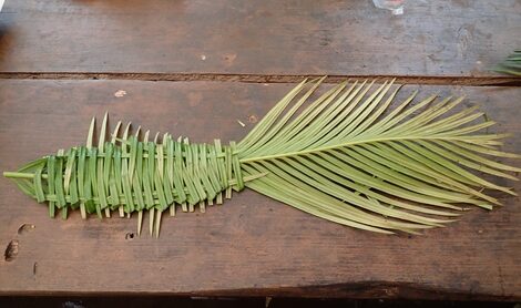 ソテツの葉で草花遊びができます。 骨骨の魚やシュリケンなどができます。 葉の先端が刺さるといたいので先端を切って作っても良いですが、 トゲを生かした魚も良いです。 気を付けて作りましょう。