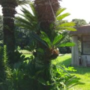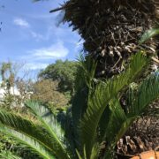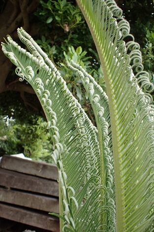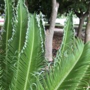 古い時代の植物なので、 イチョウと共になぞの多い不思議ちゃんの部類。 鉄を刺して元気になったと言われたり、 実は毒だし、 葉が危険と、 誤解が多い木なのかもしれません。 葉先はとげとげしていますが、 葉が展開するときはくるんくるんのかわいらしさです。 ぜひ葉っぱの縦ロールを触ってソテツの違う一面を見てください。