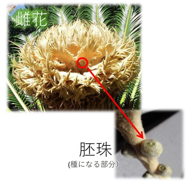 花が咲く種子植物の中ではイチョウと並んで最も原始的な植物で、 精子で受精します。