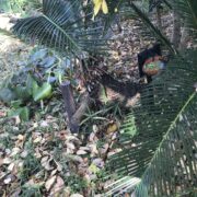 独特の木の形です。 ヤシの仲間の木とよく似ていますが、 全く違う種類の木です。 太い幹に直接大きくて硬い葉がついています。