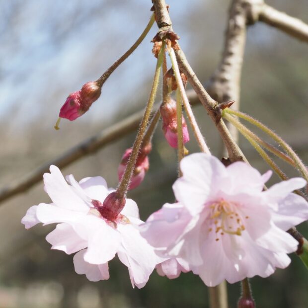 • ソメイヨシノの母親であるエドヒガンの花。 花の後ろの萼の部分がぷっくり膨らむのが特徴。