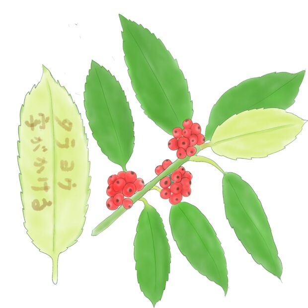その昔、 インドにおいてタラジュは葉を短冊状にして経文を描くのに使われインドの寺院のシンボル的な木でした。 しかし日本では気候的に合わず育たないためタラジュの代わりに植えられたのがタラヨウです。