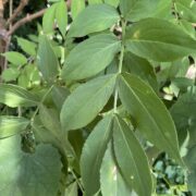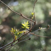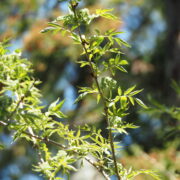 小さな葉が向かい合って2~6対ついた葉っぱです。 葉をちぎるとアーモンドに似たような独特の香りがします。