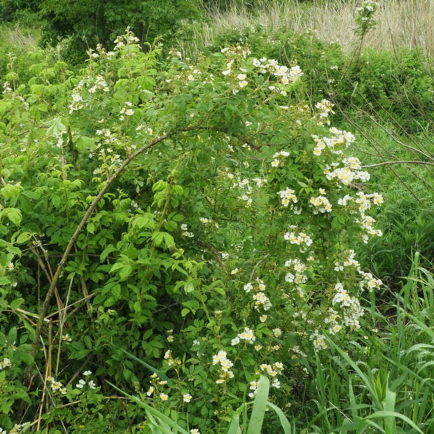 雑草のようにどんどん増えるガツガツ系です。 トゲが痛いので嫌われがちですが、 とても丈夫なので、 いろいろなバラの原種や台木になってきました。 挿し木もでき、 生命力にあふれています。
