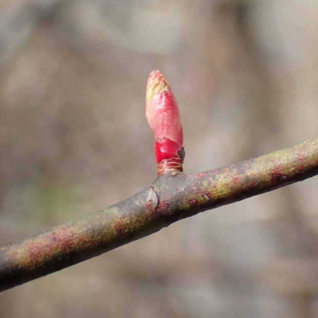 紅くて先がとんがった冬芽を付けます。