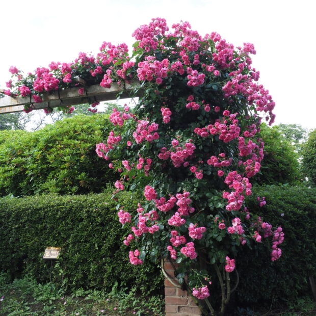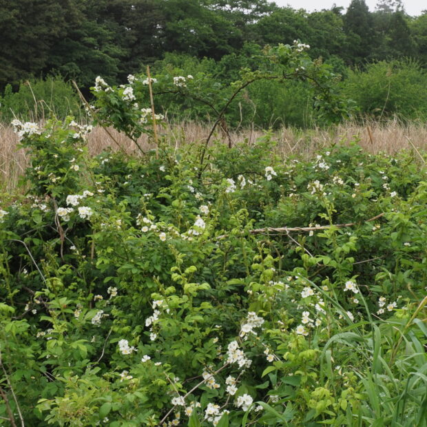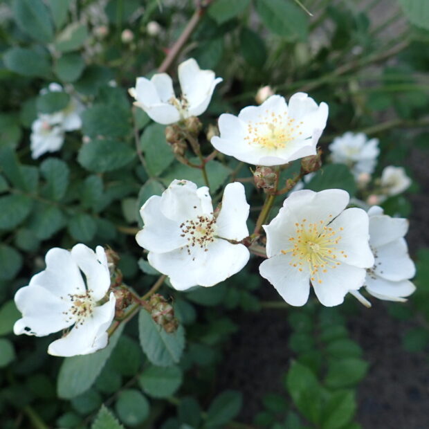 ところが江戸時代末期、 ヨーロッパにわたり、 園芸種のバラとかけあわされて「つる性」「花がたくさん咲く」という特性をもつ品種の親となりました。 まさに現代の私たちがみている美しいバラの「元祖」の一つといえる木なのです。