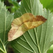 小さなハバチの幼虫が集団で葉を食べ丸坊主になることがあります。