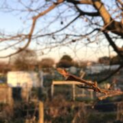毛がもじゃもじゃの冬芽。 必ず脇に小さな予備芽がついています。