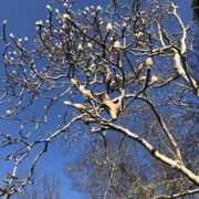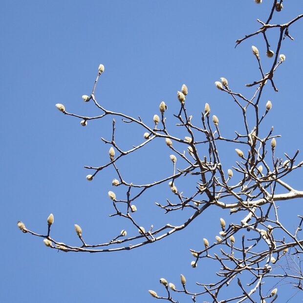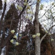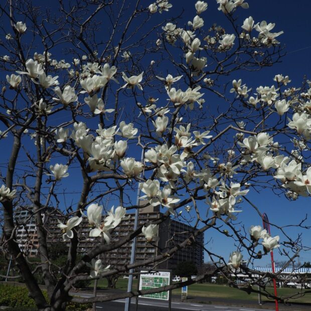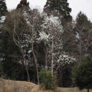 早春にの葉を出す前に大きな白い花を一度に沢山咲かせます。