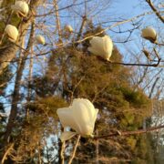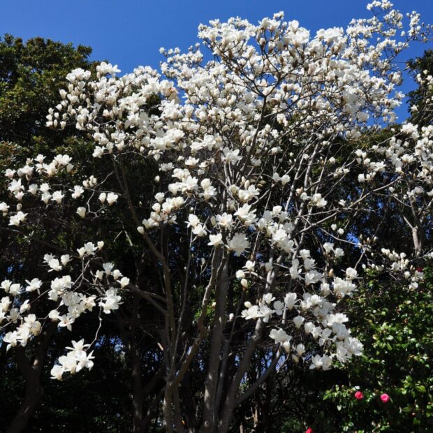 モクレンの花に似た白い花を咲かせるので「白い木蓮」→「ハクモクレン」となりました。