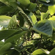 モクレンの仲間は被子植物の中では最も原始的なグループで、 その祖先は恐竜も生きていた中世代にさかのぼるといわれています。 そのため、 花の雄蕊(ゆうずい)と雌蕊(しずい)がらせん状に並び原始的な特徴あります。