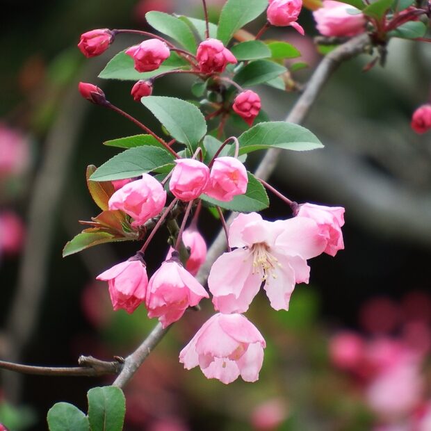 中国で「海棠(かいどう)」はハナカイドウのほかミカイドウ等も含まれます。 海棠の別名を「睡花」といいますが、 これは中国の皇帝が美しい妻・楊貴妃の酔った後の姿を賞して「海棠の睡いいまだ足らず」といった故事に因ります。