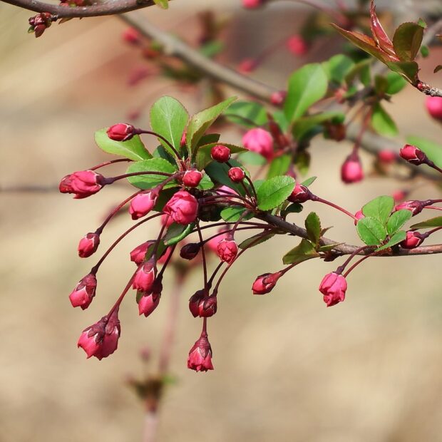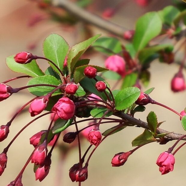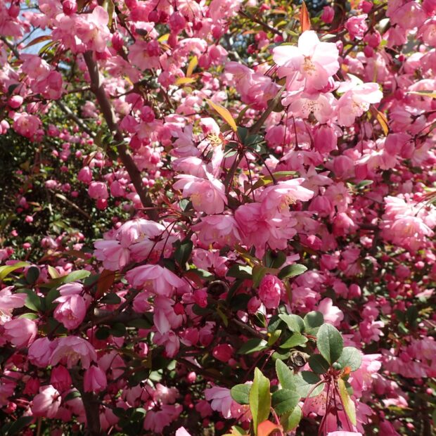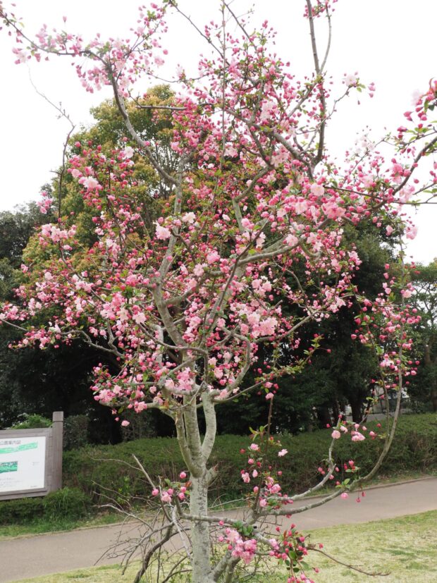 春、 ピンク色の花を木いっぱいに咲かせる様子ははっとするほど華やかです。