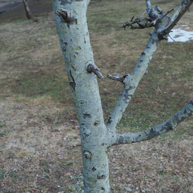 枝が暴れやすく、 葉の無い落葉の時期は武骨な印象のある樹形です。 この美しさを保つのには手間がかかるのです。