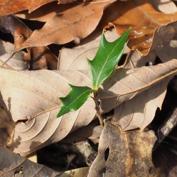 とげとげの葉のおかげで鹿害の進んでいる森でも若い木が沢山見られます。