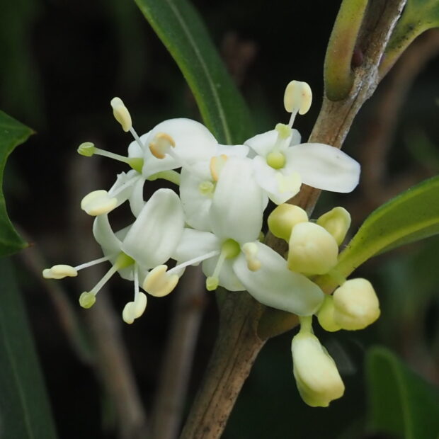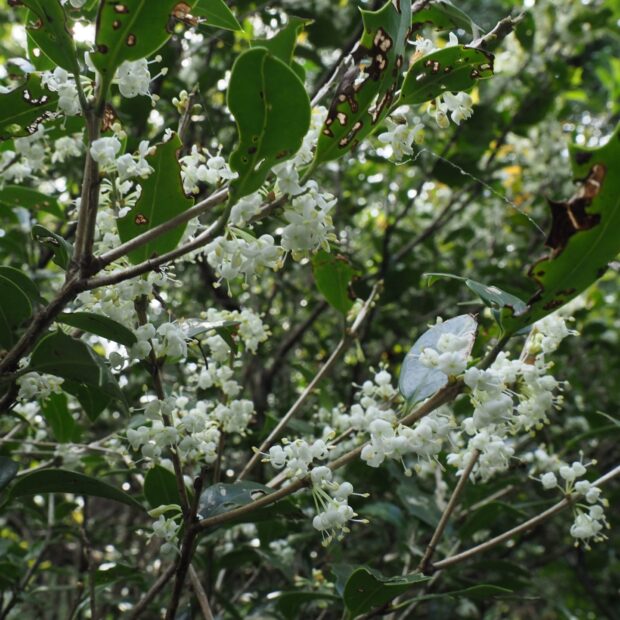 キンモクセイの花を白くしたような上品な香りの花が咲きます。