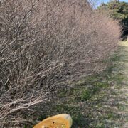 そんなヒュウガミズキですが、 電柱の支線のカバーから咲いている木を見かけました。 たぶん、 たまたま枝がカバーに入って「え?なんでこんなに暗いの?やばいじゃん!」とあせって上へのびてカバーから顔を出したのだと思います。 たまにはこういう木も大事に育ててもらえると良いですね。